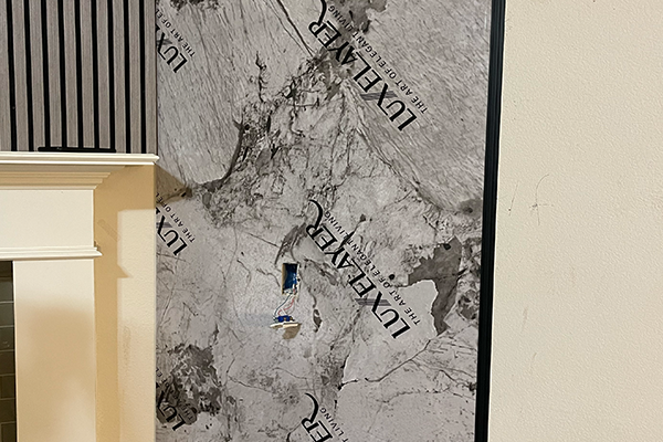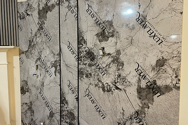 Insert Once the panel is applied to the wall, simply insert the H-Trim or the duplex H-trim whichever you desire along the edge of the panel. ( If you applying in shower FILL THE EDGES OF THE H-TRIM WITH CLEAR SILICON). the panel will slide in effortlessly, as it is designed to fit the exact 5mm thickness of the panel.use water level to make your panel is straight.