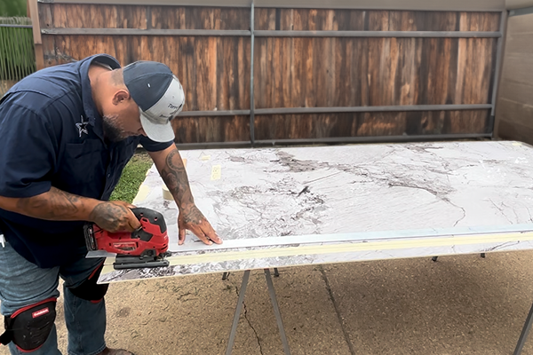 Cut your panel to size. Perform this task on a sturdy surface to guarantee a precise and neat edge. Use a Stanley knife if the edges are within the flexible part of the panel; otherwise, employ a hand saw or electric saw.