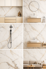 Manufactured using advanced waterproof PVC / HPL / PU stone composite technology, Aurora Gold Marble offers the beauty of natural marble with enhanced durability, lightweight construction, and effortless installation—perfect for modern residential and commercial spaces.