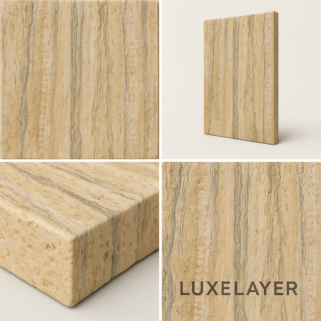 • Natural layered stone appearance with subtle linear movement