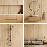 Strata Stone is inspired by naturally layered sedimentary stone, capturing the quiet elegance of mineral strata formed over time. Its linear texture and soft neutral tones create a refined architectural surface that balances organic character with modern minimalism.